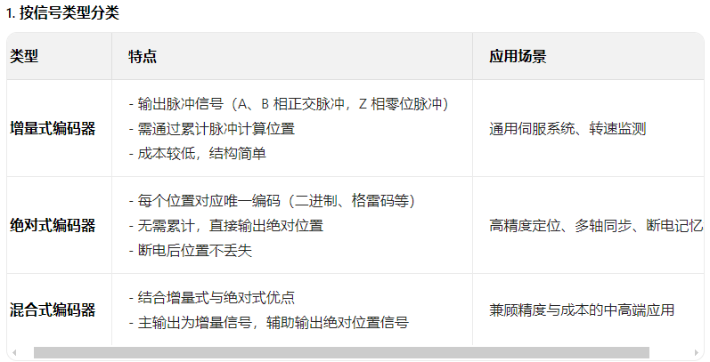 根據工作原理和輸出信號類型,編碼器可分為以下幾類: